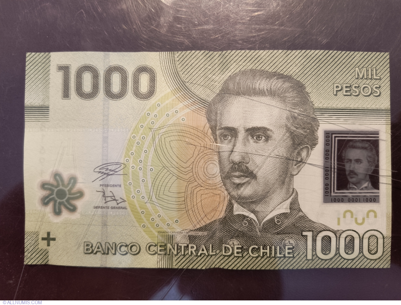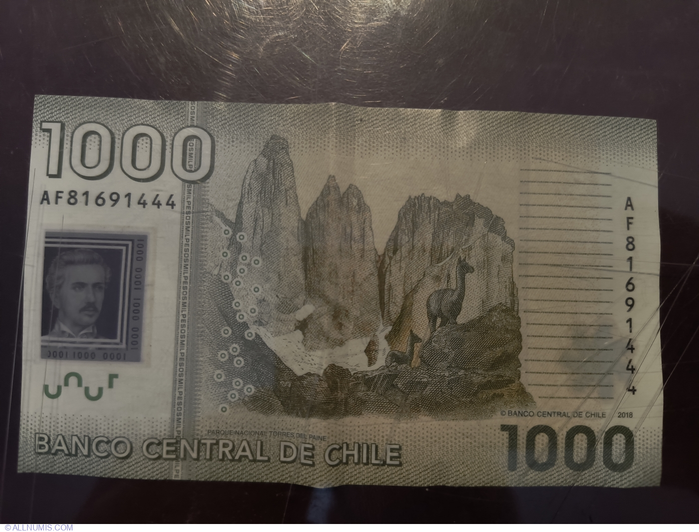CHILE 1000 PESOS UNC POLYMER Banknote (2018) P-161h Prefix FB Marcel-Zurbuchen