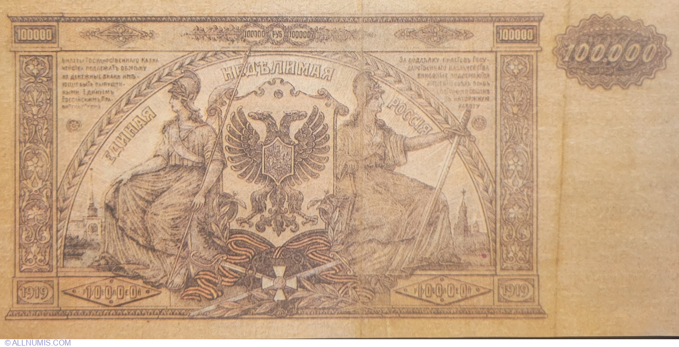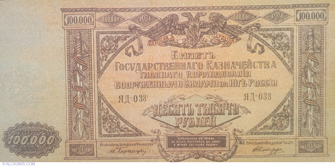 100000 Ruble 1919 - cu inscris partial de 10000 ruble