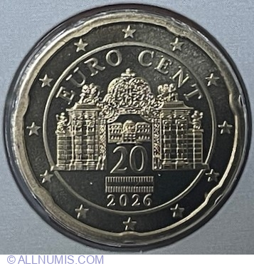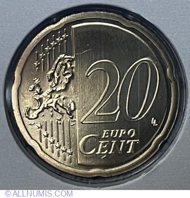 | Descriere avers | În partea dreaptă, numeralul 20 care indică valoarea nominală; sub numeral, cuvintele EURO şi CENT, unul sub celălalt; cuvântul CENT este scris cu litere mai mari decât cele folosite pentru cuvântul EURO, iar litera C este mai mare decât celelalte litere ale cuvântului; în stânga se află şase linii paralele verticale; aproape de fiecare dintre extremităţile liniilor apare câte o stea care înterupe linia - în total sunt douăsprezece stele; peste linii, la mijloc, este suprapusă harta Europei; în partea din dreapta-jos apar iniţialele LL ale gravorului |