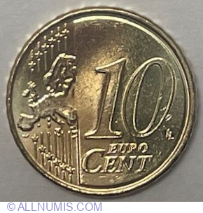Descriere avers | În partea dreaptă, numeralul 10 care indică valoarea nominală; sub numeral, cuvintele EURO şi CENT, unul sub celălalt; cuvântul CENT este scris cu litere mai mari decât cele folosite pentru cuvântul EURO, iar litera C este mai mare decât celelalte litere ale cuvântului; în stânga se află şase linii paralele verticale; aproape de fiecare dintre extremităţile liniilor apare câte o stea care înterupe linia - în total sunt douăsprezece stele; peste linii, la mijloc, este suprapusă harta Europei; în partea din dreapta-jos apar iniţialele LL ale gravorului |
