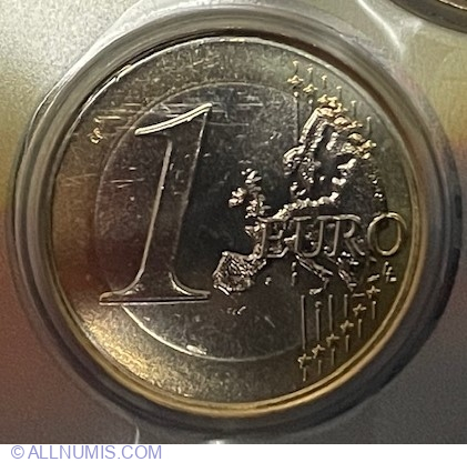 | Descriere avers | În partea stângă, numeralul 1 care indică valoarea nominală; în dreapta se află şase linii paralele verticale; aproape de fiecare dintre extremităţile liniilor apare câte o stea care înterupe linia - în total sunt douăsprezece stele; în dreapta se află harta Europei; partea dreaptă a hărţii este suprapusă peste linii; cuvântul EURO este scris pe orizontală în partea dreaptă, suprapus peste hartă; sub litera O apar iniţialele LL ale gravorului.. |