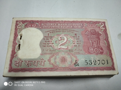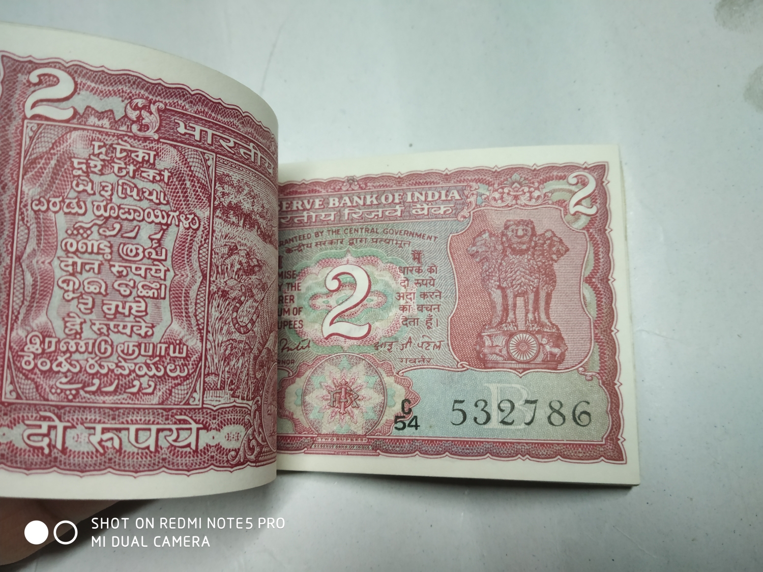 Two rupee note with signature I.G.PATEL and serial number 100 notes and in this no.786 is available.
