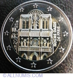 2 Euro 2025 - 1st anniversary of the reopening of Notre Dame Cathedral in Paris.
